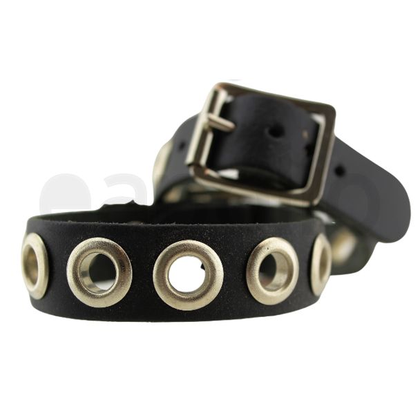 1 Row Black Studded Leather Bracelet With Eyelets