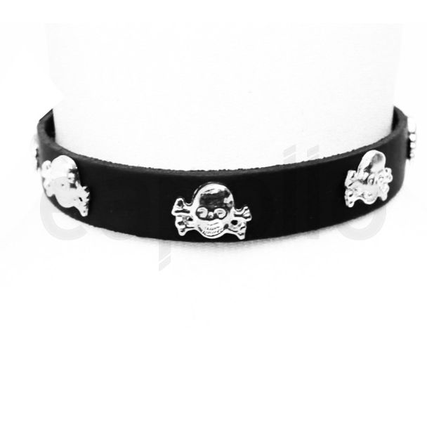 1 Row Skull And Crossbones Leather Choker