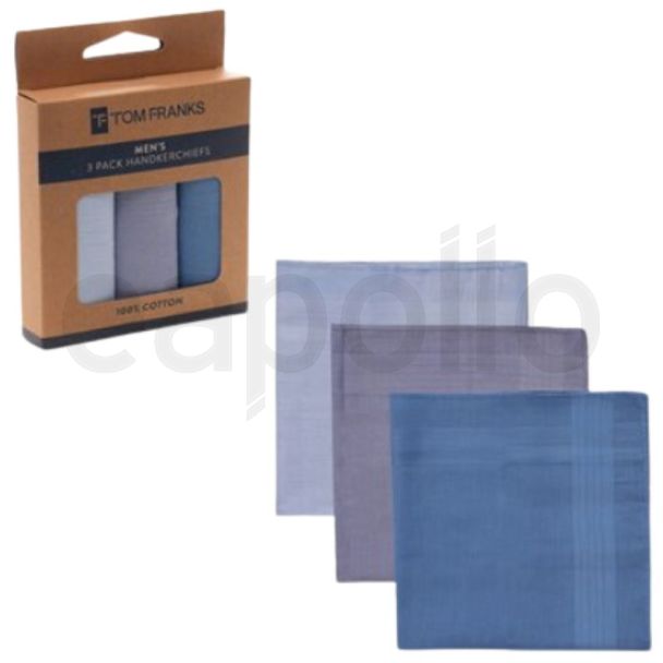 Mens 3pk Blues 100% Cotton Hankies - Brown Box