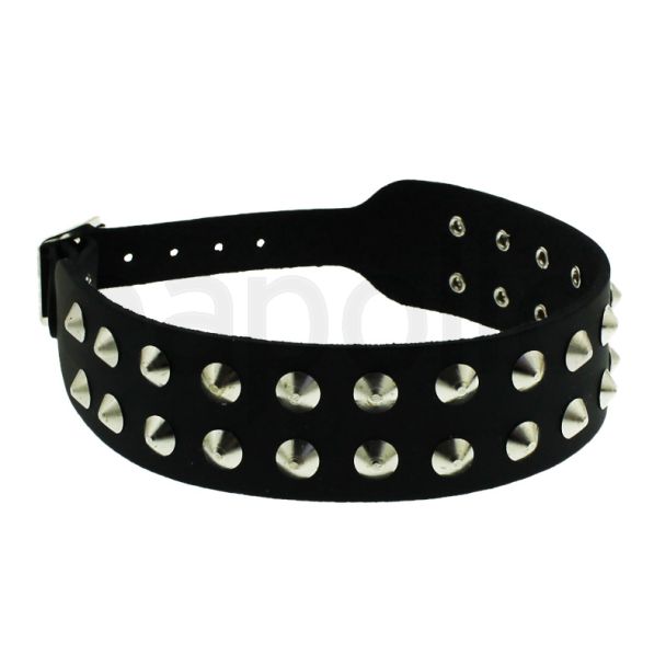 Genuine Leather 2 Row Conical Studded ChokerÂ