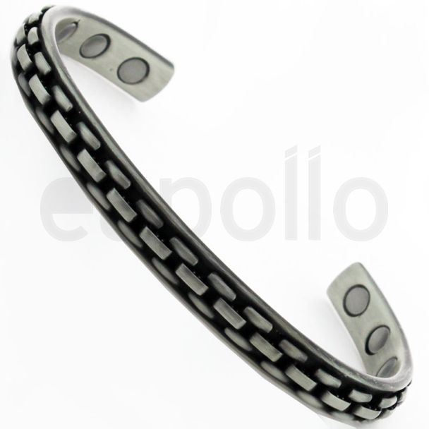 100% Copper Core Magnetic Bangle - Pewter Coated Elevated Links (M)