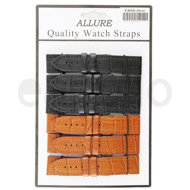 Allure Premium Leather Croc Stitched Watch Straps - Tan/Black - 24mmt