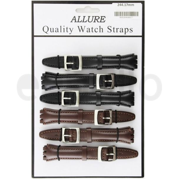 Allure Leather Padded Watch Straps - Assorted Colours - 17mm