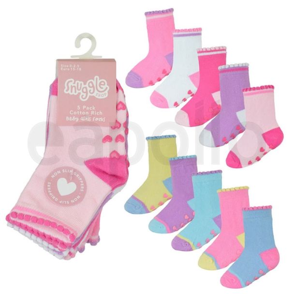 Baby Girls Heel & Toe Ankle Socks With Gripper(5 Pack) - Assorted