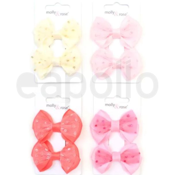 Card of 2 grosgrain and net bow clips- 4cm