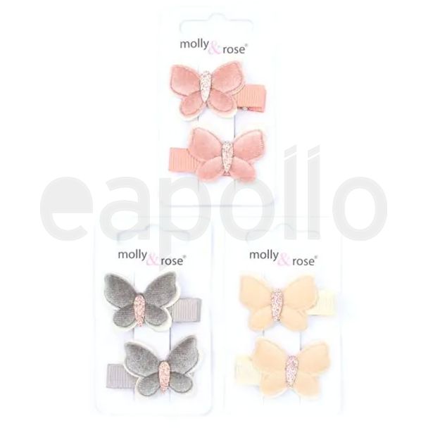 Card Of 2 Velvet Butterfly Clips 3.5cm is available to buy in increments of 6