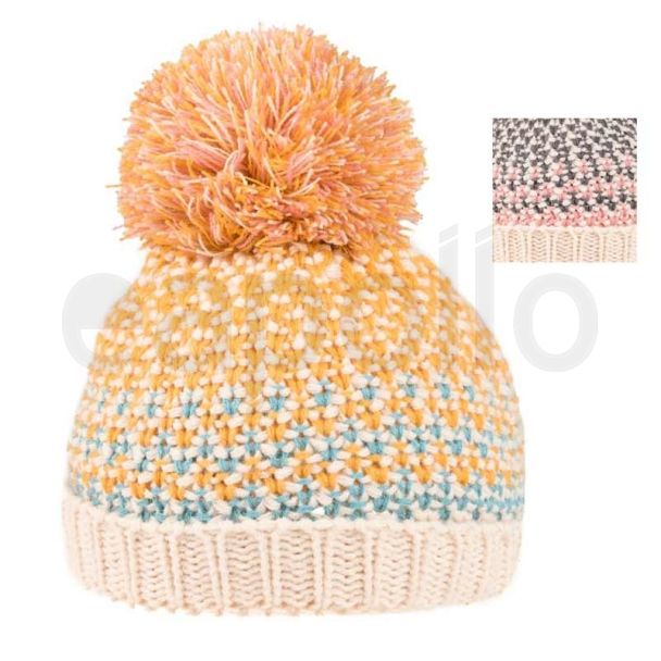 Girls knitted Pop Pom bobble hat with inside cotton lining