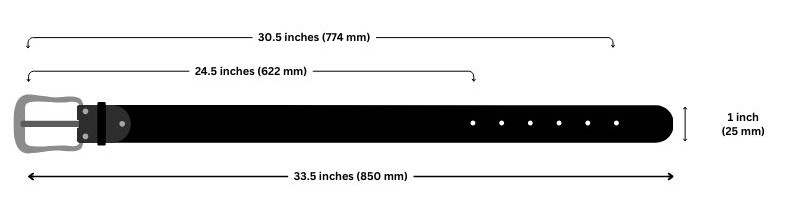 - Waist Fitting: 24.5 inches (622 mm) to 30.5 inches (774 mm) approx.
