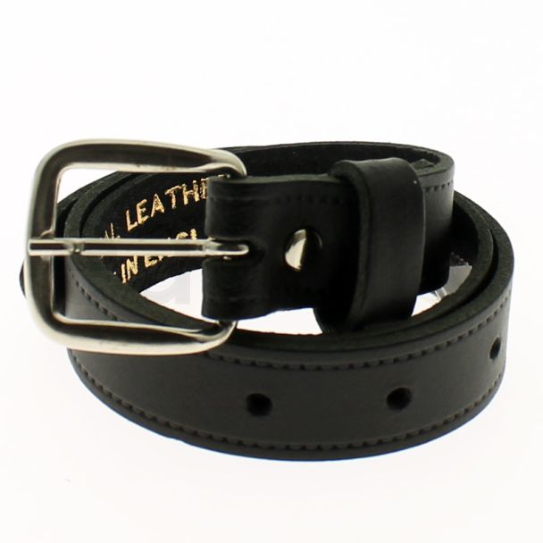 Children's Genuine Black Leather Belt With Stitch Mark - 1 Inch Wide (30 Inches)