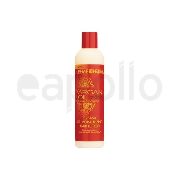 This creamy oil-rich formula blends Argan oil into a moisturizing hair lotion that restores moisture, softens and smooths hair for improved manageability, making it easier to comb.