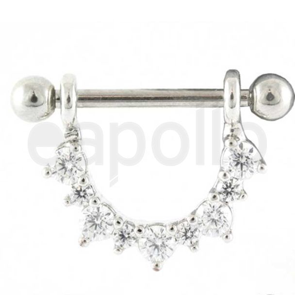 A steel nipple bar set with Clear Cubic Zirconia gems
