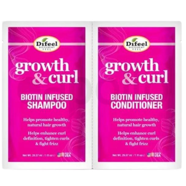Difeel Growth & Curl Biotin Infused Shampoo and Conditioner - Dual Sachet Set - (29.57ml) is available to buy in increments of 3