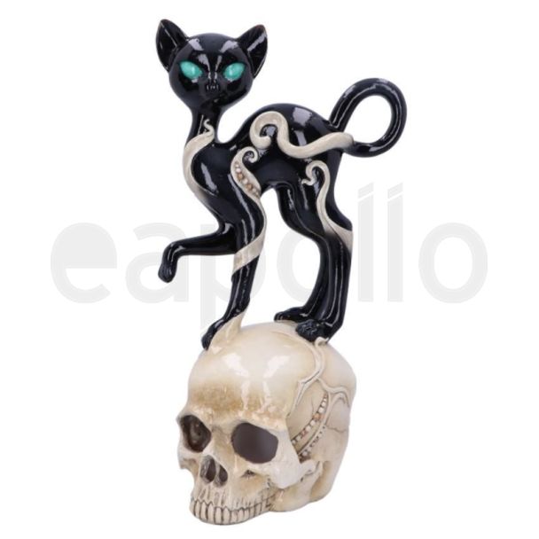 Feline Fate Light Up Skull with Black Cat Figurine - 34.6cm