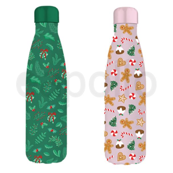Each bottle has a metal construction, 500ml capacity with a fun festive print and is double walled to help keep drinks cold for longer periods of time.