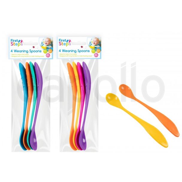 This pack of four long handle weaning spoons is an essential item to any baby collection, designed with a long handle for an easy feeding experience.