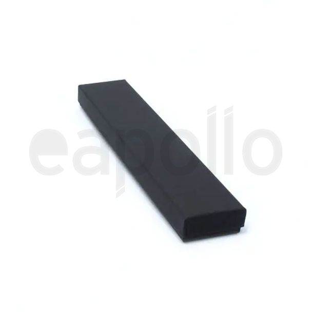 Black coloured gift box with fitted black flock inner. Elasticated fitting at one end and a small wire hook at the other.