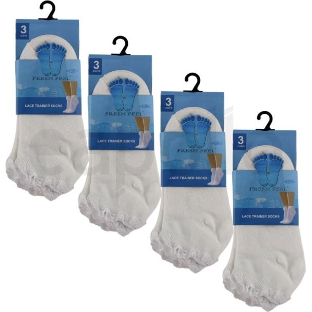 Fresh Feel White Lace Trainer Socks For Girls