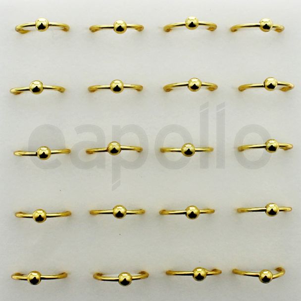 Gold Ball Twist Nose Rings Wire 0.8mm Internal diameter 8mm Supplied in Box of 20