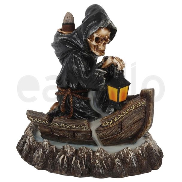 Grim Reaper Boat Backflow Incense Burner - 17cm