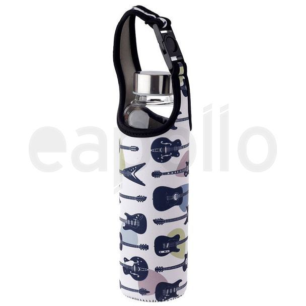 Headstock Guitar Reusable Glass Water Bottle with Protective Neoprene Sleeve with Strap
