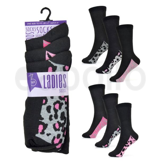 Ladies Animal Footbed Design Ankle Socks (3 Pack) - Assorted is available to buy in increments of 4