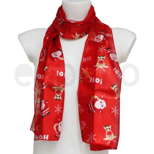 Ladies Santa & Rudolph Design Scarf - Red is available to buy in increments of 3