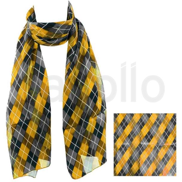 Ladies Satin Scarf - Romb Pattern (Gold/Grey) is available to buy in increments of 6