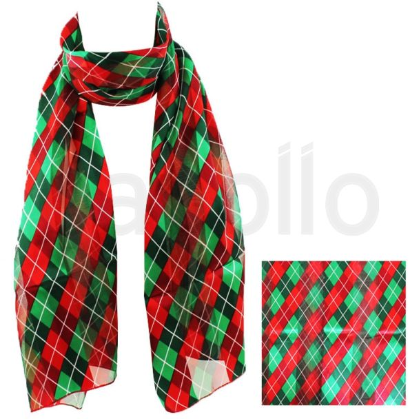 Ladies Satin Scarf - Romb Pattern (Red/Green) is available to buy in increments of 6