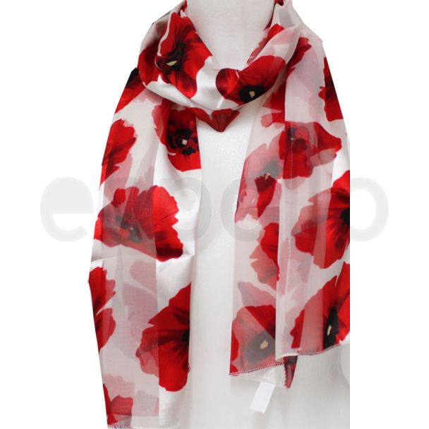 Ladies Satin Scarves Poppy Flower Design - Cream