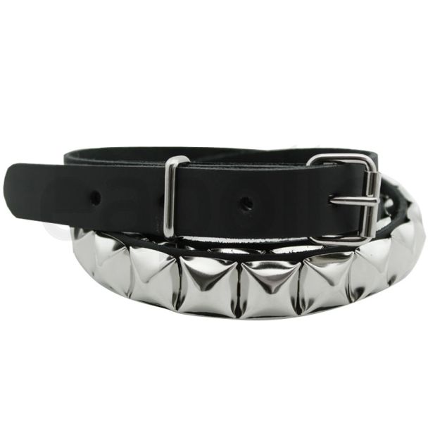 Leather 1 Row 19mm Pyramid Studded Belt Black (S)