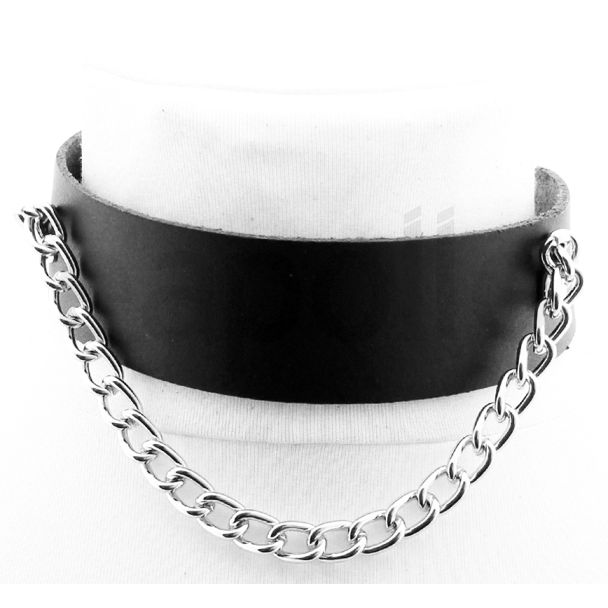 Leather Choker With Chain (20cm Chain)