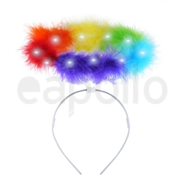 This light up fluffy angel halo headband features six colours to form a rainbow and is an ideal fancy dress accessory for celebrating Pride.