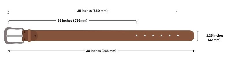- Waist Fitting: 29 inches (736 mm) to 35 inches (860 mm) approx.