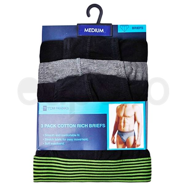 Men's Briefs With Striped Waistband - Tom Franks (3 Pack) - Asst