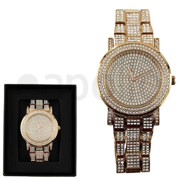 NY London Men's 3 Bling Crystals Gun Black Watch