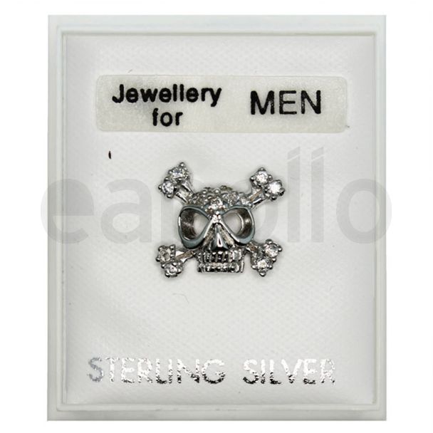 Men's Sterling Silver Skull & Cross Bones Stud - 7mm