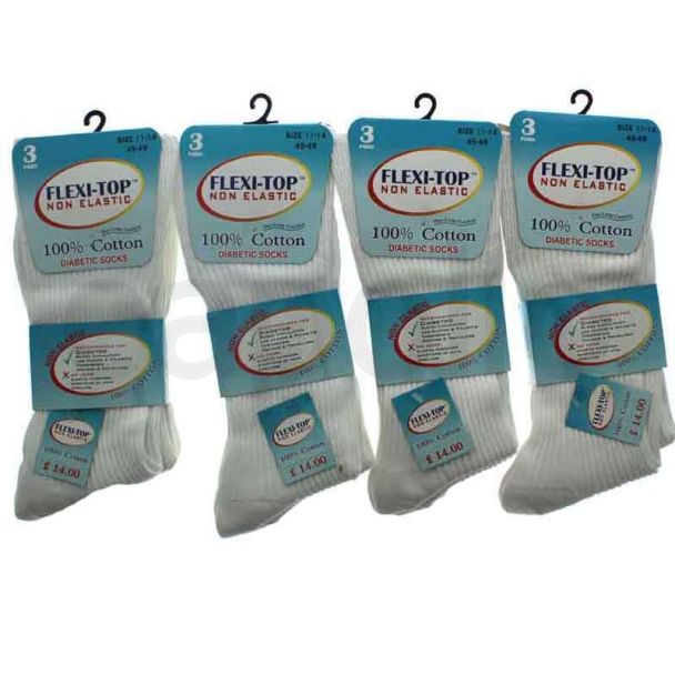 Men's White Non-Elastic Big Foot Diabetic Socks - Flexi Top (3 pack)