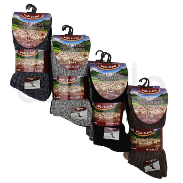 Men's Wool Blend Non-Elastic Cushion Sole Socks (3 Pack) - Asst.