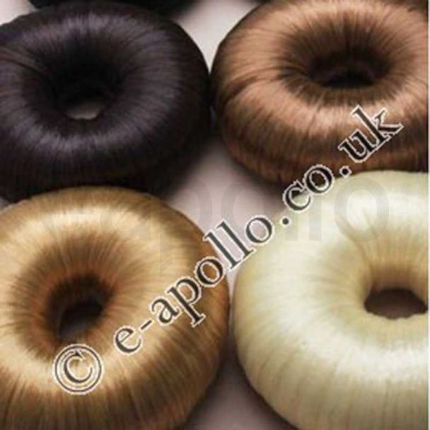 Imitation round hair bun comes in 4 natural hair colours (dark brown, light brown, honey blonde and blonde)