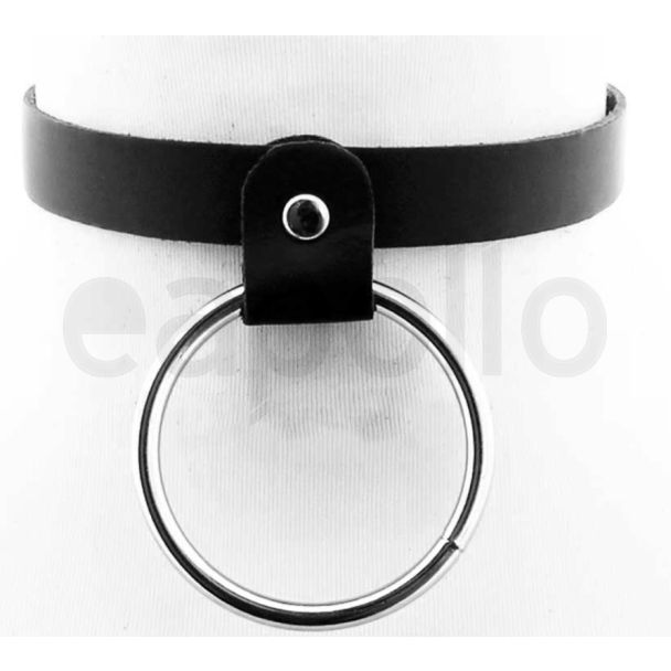 Genuine Leather Narrow Neckband With Large Ring