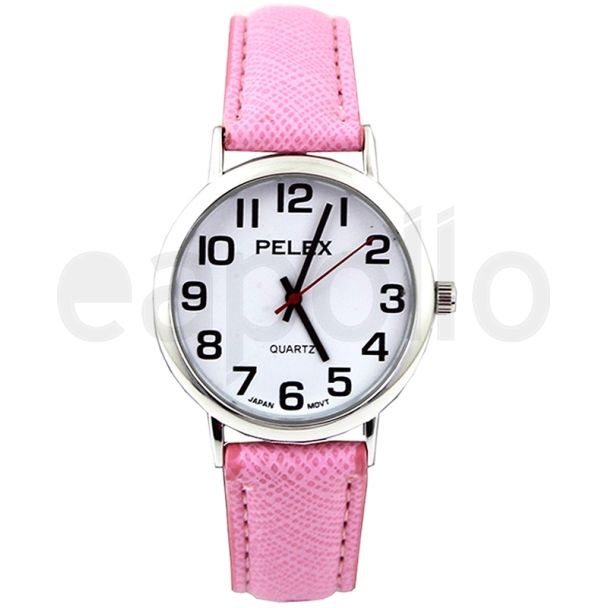 Pelex Unisex Classic Round Dial Leather Strap Watch - L-Pink/Silver