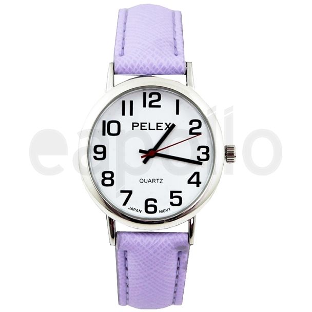 Pelex Unisex Classic Round Dial Leather Strap Watch - L-Purple/Silver
