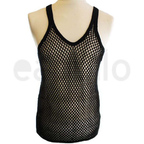 Plain String Vest Black - X-Large is available to buy in increments of 2