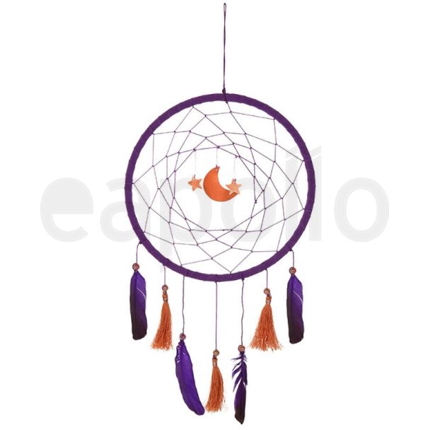 This celestial style features purple feathers and copper bead, tassel and star accents with a crescent moon in the centre.