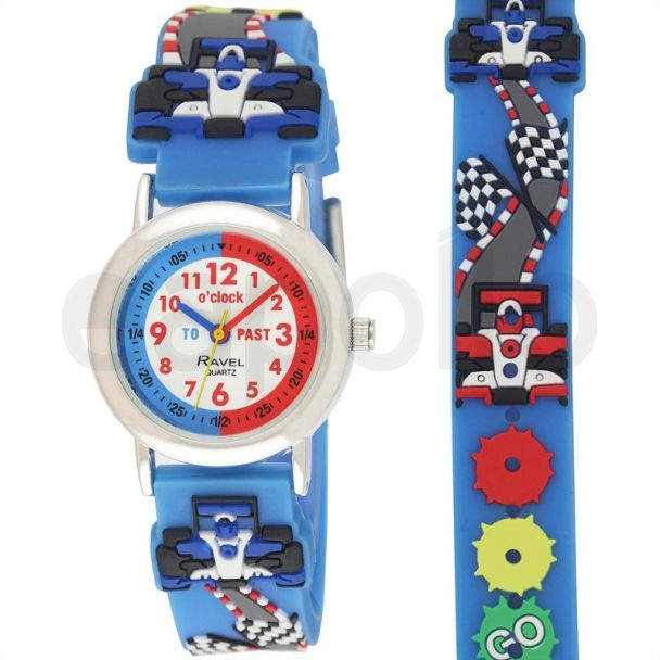 Ravel Boys Time Teaching Cartoon Silicone Strap Watch - Blue Formula Racing Car