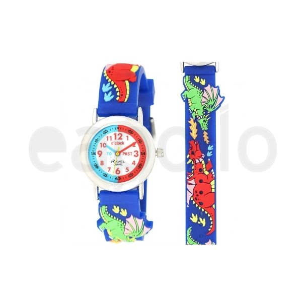 Ravel Boys Time Teaching Cartoon Blue Silicone Strap Watch - Dinosaurs (Fire)