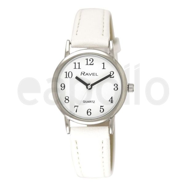Ravel Ladies Classic Lather Strap Watch - Silver & White is available to buy in increments of 2