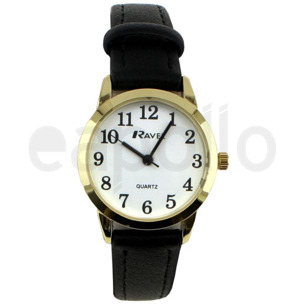 Ravel Ladies Easy Read Black Strap watch - Gold/White