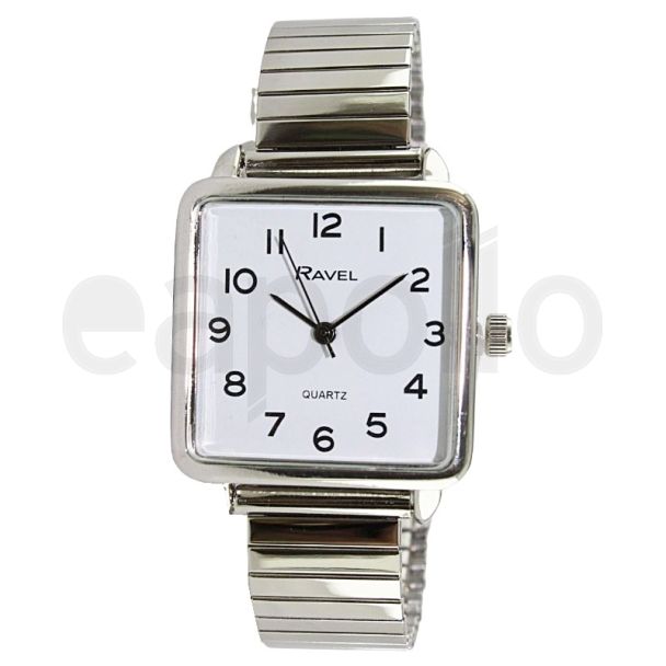 Ravel Ladies Square Metal Expander Strap Watch - Silver is available to buy in increments of 2