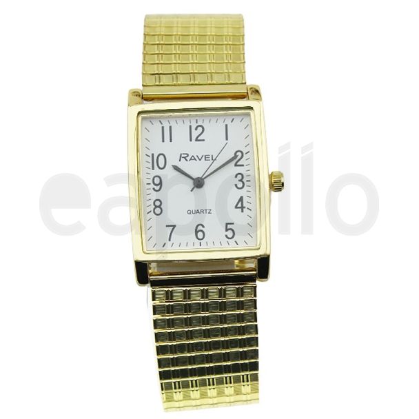 Ravel Men's Rectangular Dial Metal Expander Watch - Gold/White is available to buy in increments of 2